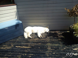 Legg merke til leken som henger i treet øverst i venstre hjørne. Frost er nok ikke den som er mest gira på lek, ihvertfall ikke i varmen....og IHVERTFALL ikke om han må hente den ned selv :-)